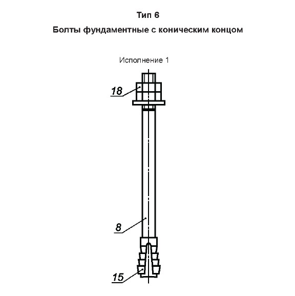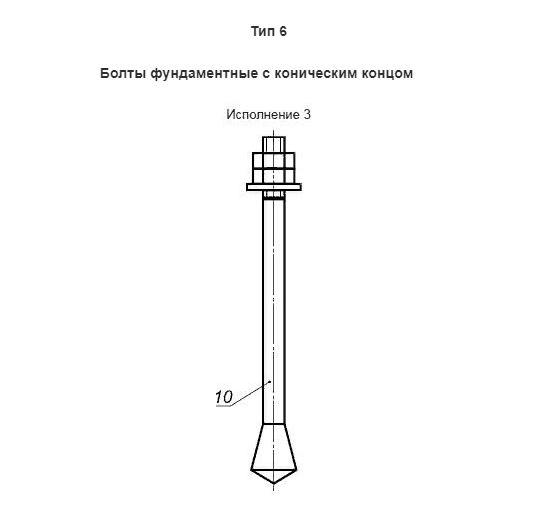 - Фундаментный болт с коническим концом тип 6