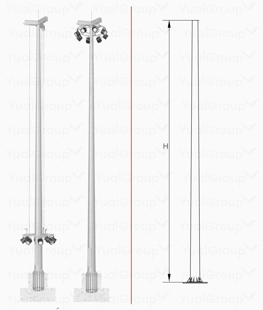 Мачты освещения, высокомачтовые опоры, осветительные мачты, прожекторные мачты – все эти определения металлических мачт вобрали в себя дефиницию осветительного оборудования для размещения осветительных приборов (в большинстве случаев прожекторов) на высоте более 12 м (не считая опор ОГКф-14, ОГКф-16), для организации освещения больших площадей. Производство мачт освещения является приоритетным направлением. Вот уже почти два десятка лет мы производим высокомачтовые опоры, за этот период накопился большой ассортимент прожекторных мачт (можно подобрать для применения в различных сферах), разработаны разнообразные конструктивные вариативности решения корон (стационарные ОВС и мобильные ОВМ), отлажена и оптимизирована технологическая цепочка производства (минимальные сроки изготовления, оптимальная цена), продуманные и надежные мачты (при разработке наши конструктора учитывают следующие параметры: особенности места локализации (рельеф), порода грунта, климатический район установки, ветровой район эксплуатации , характеристики нагрузки и др.), при производстве мачт используем только качественное сырье и материалы (продукция выпускается в строгом соответствие со стандартами и нормами качества, что подтверждено сертификатами качества).