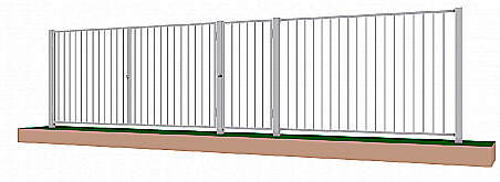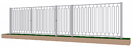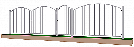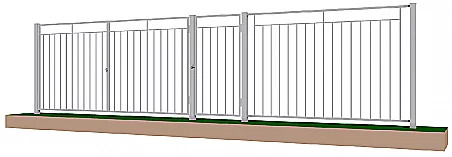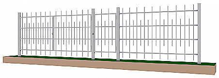 Металлический секционный сварной забор представляет собой ограждение в виде металлоконструкции, собранное из готовых панелей. Они выполнены из труб и прутьев, а в качестве опор здесь использованы металлические столбы. Соединяются панели между собой посредством тех же опорных столбов.